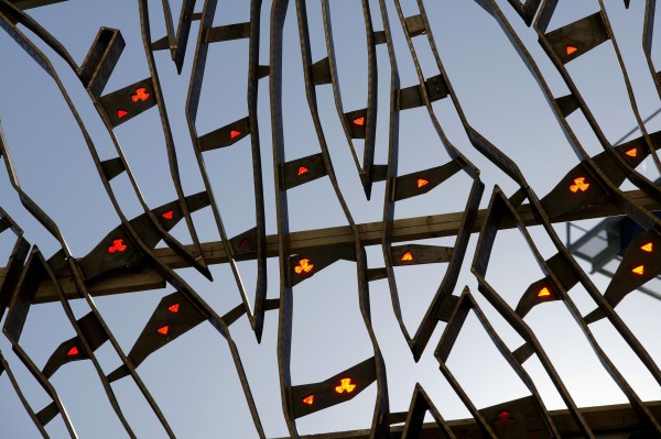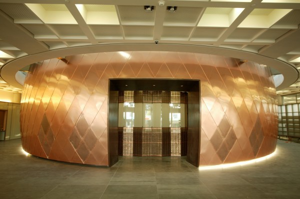 Inspired by New Zealand’s natural heritage, the decorative screen that surrounds the building was inspired by the branches of pōhutukawa and rātā trees. It is made from recycled bronze and has red recycled glass inserted into the design to represent the flowers. Inside the building the courtroom takes its inspiration from the seed cone of a kauri tree. See the Supreme Court brochure to find out more.