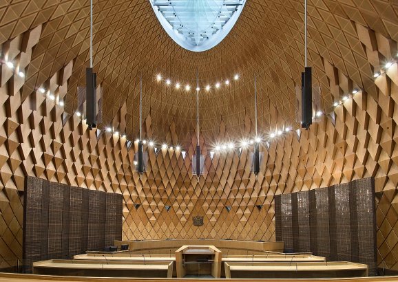 The Supreme Court complex incorporates a number of sustainable features. It has a displacement ventilation system which reduces energy costs and provides the buildings with a quiet soft flow of air. Solar panels provide water heating for the complex. The glass used provides solar control and thermal insulation. The bronze screen around the outside of the building provides solar shading. Native timber used in the construction has come from sustainable sources.